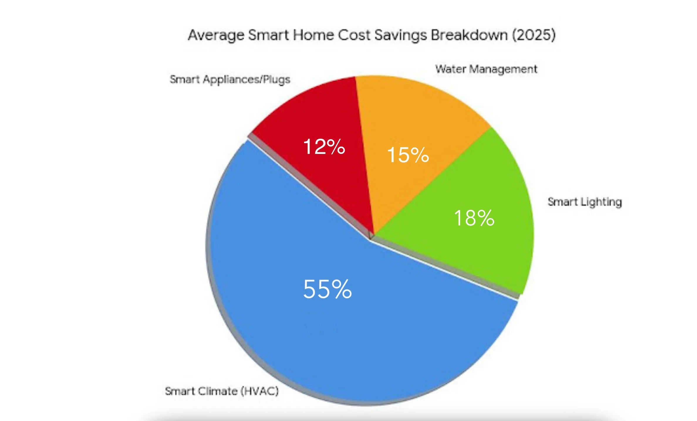 • The Proof: HVAC systems account for nearly 48–50% of total home energy use. Energy Star certified smart thermostats are proven to reduce heating and cooling bills by an average of 8–15%. Because the "pie" of HVAC spending is so large, even a 10% reduction represents more than half of a home’s total potential smart savings.